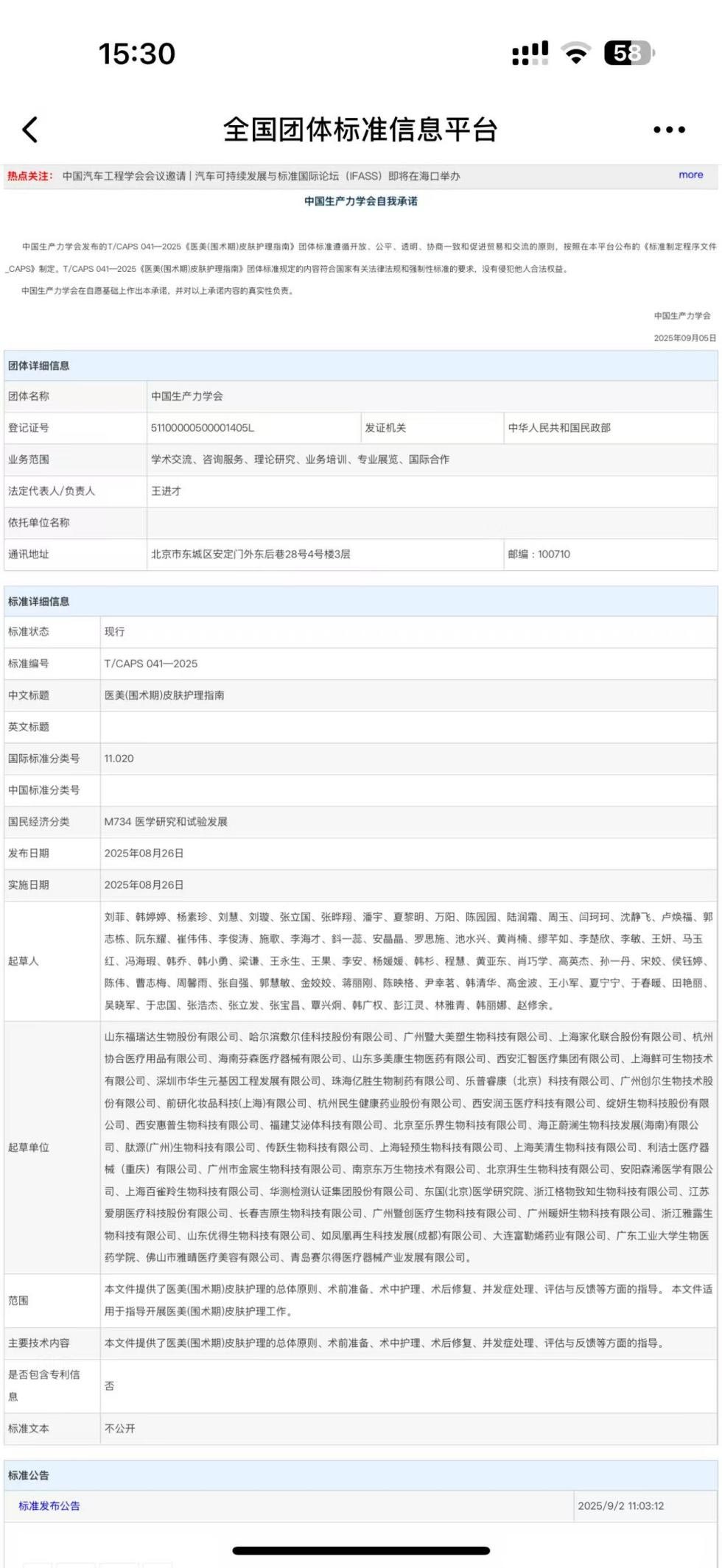 Em 26 de agosto de 2025, foi lançada a norma do grupo "Diretrizes para Cuidados com a Pele em Estética Médica (Período Perioperatório)" (número padrão: T/CAPS 041 - 2025), elaborada em conjunto pela Sociedade de Produtividade da China e diversas empresas líderes do setor, incluindoQingdao Saildar Desenvolvimento da Indústria de Dispositivos Médicos Co., Ltd., foi oficialmente lançado e implementado. Este evento marca um passo importante na padronização da indústria de estética médica do meu país e também injeta um forte impulso no desenvolvimento da Qingdao Saildar Desenvolvimento da Indústria de Dispositivos Médicos Co., Ltd.